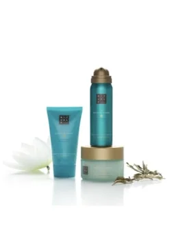 Reichhaltige Feuchtigkeitscreme, die schnell in die Haut einzieht. Schützt die Haut vor vorzeitiger Hautalterung durch UVA- und UVB-Strahlen und fördert eine sommerliche Bräune. Sichern Sie sich mit dieser schützenden The Ritual of Karma Gesichtscreme mit LSF50 den perfekten Sonnenschutz. Diese reichhaltige, feuchtigkeitsspendende Creme zieht schnell in die Haut ein und ist mit einem wirkungsvollen natürlichen Antioxidantienkomplex ausgestattet, basierend auf biologischem weißem Tee, natürlichem Vitamin E und Ginkgo Biloba. Schützen Sie Ihre Haut auf diese Weise vor vorzeitiger Alterung durch UVA- und UVB-Strahlen. Zudem ist die Formel wasserfest, sodass sie sich perfekt für den Pool oder das Meer eignet.